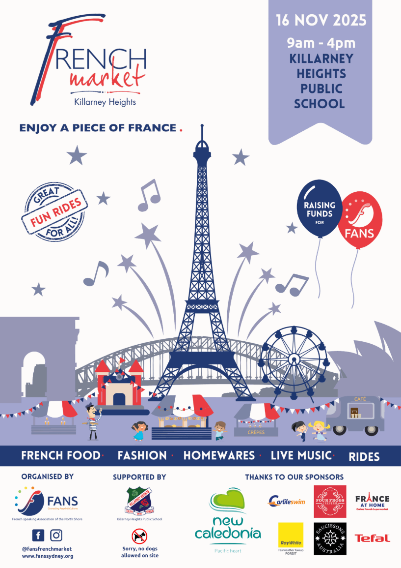 The French Market team is busily preparing the 19th edition of our major community event. Be sure to mark your calendar for Sunday 16 November, 9am to 4pm and get involved to support this major fundraiser.