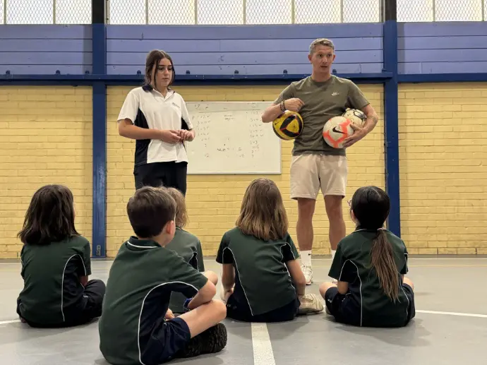 One coach and one assistant coach for groups of 15 students, from Kindy to Year 3.